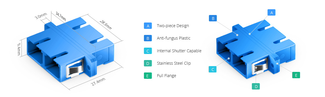 ویژگی های SC / APC Simplex آداپتور فیبر نوری
